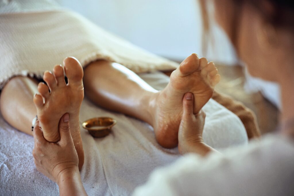 La réflexologie plantaire Thaïe est un massage de relaxation rythmé par une succession de pressions, d’effleurements, de percussions et d’étirements, des orteils jusqu’au-dessus du genou.